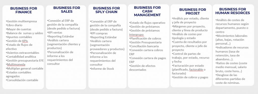 Estas tres últimas herramientas ayudan son muy necesarias para la realización de los ETL de la información financiera y para recopilar información adicional extracontable necesaria para la elaboración de los sistemas de reporting.